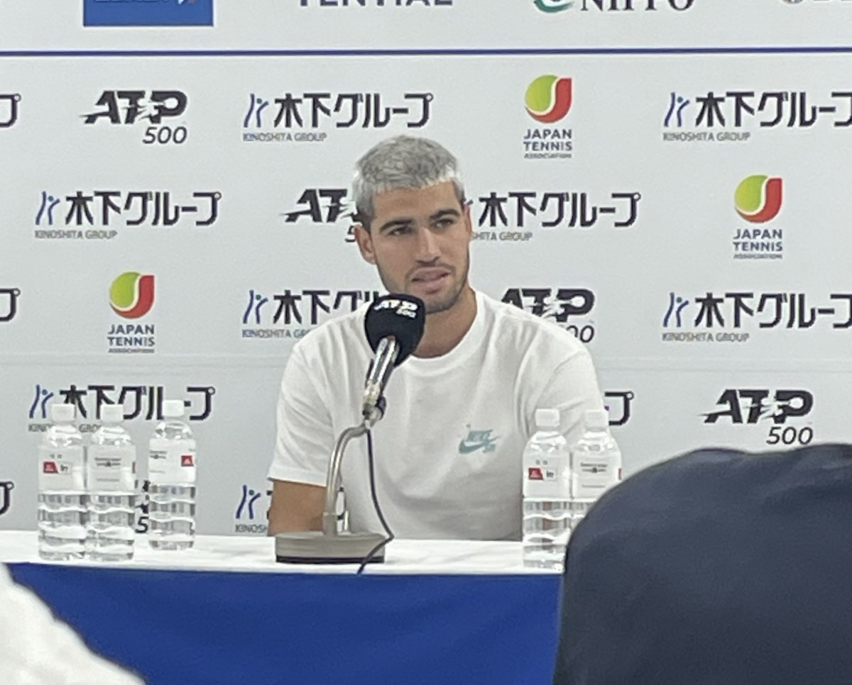 22歳にして、獲得グランドスラムは既に6を数える。2週間前に全米オープンを制し、世界の頂点に返り咲いたばかり。その足でジャパンオープンに乗りこんできたカルロス・アルカラスは、表情に多少の疲れを滲ませながらも、いつもの飾らぬ姿そのままで、有明コロシアムにいた。